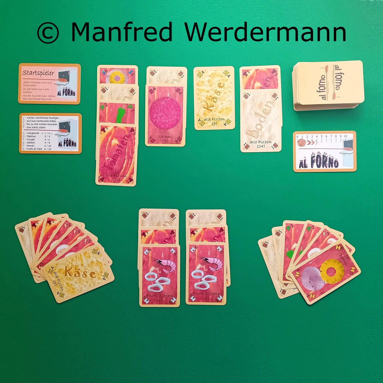 Al Fornoein heißes KartenspielWer schafft es - bevor der Ofen voll ist - mit der Zusammenstellung seiner Pizzen die meisten Siegpunkte zu kassieren? Dabei gilt: Das Richtige zu sammeln und taktisch klug auf die Kartenreihen zu bieten. |